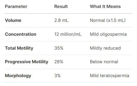 Also, a single test isn't always definitive. Repeat testing is usually recommended, as sperm quality can fluctuate due to illness, stress, or lifestyle factors. If you’ve been following our stories, then you know in the last blog that we’ve had many male patients who came with poor semen samples, but were able to turn things around with changes in diet and lifestyle! There’s definitely hope because sperm is constantly being replenished.